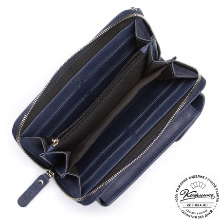 Клатч имеет 2 отделения, разделенных перегородкой. Имеется отделение для карт, среднее отделение на молнии, на стенке также есть отделение на молнии.