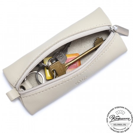 Внутри кольцо для ключей на цепочке, что обеспечивает дополнительное удобство использования. Закрывается ключница на молнию, снаружи есть небольшой карабин.