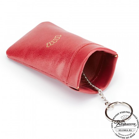 Закрывается ключница на молнию, внутри большое металлическое кольцо для ключей.