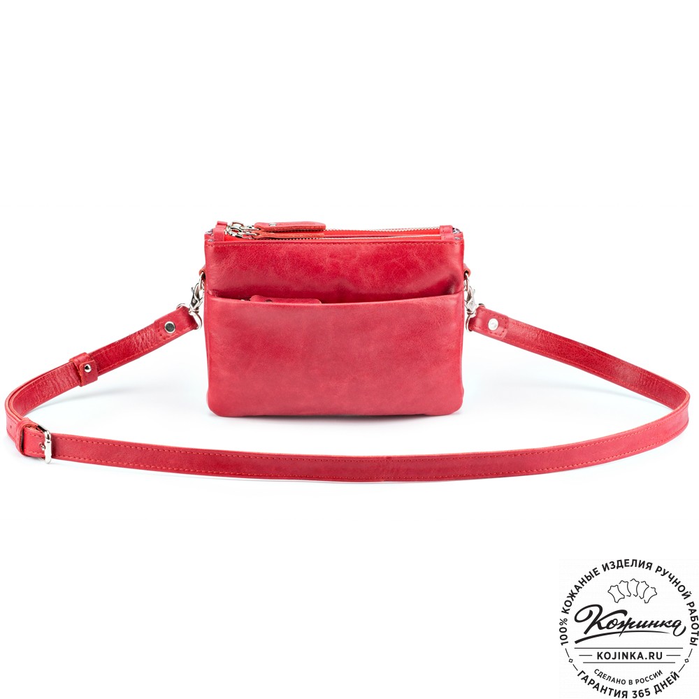 Женская кожаная сумка "Хельга" (красная) – маленькая аккуратная сумочка с двумя отделениями.