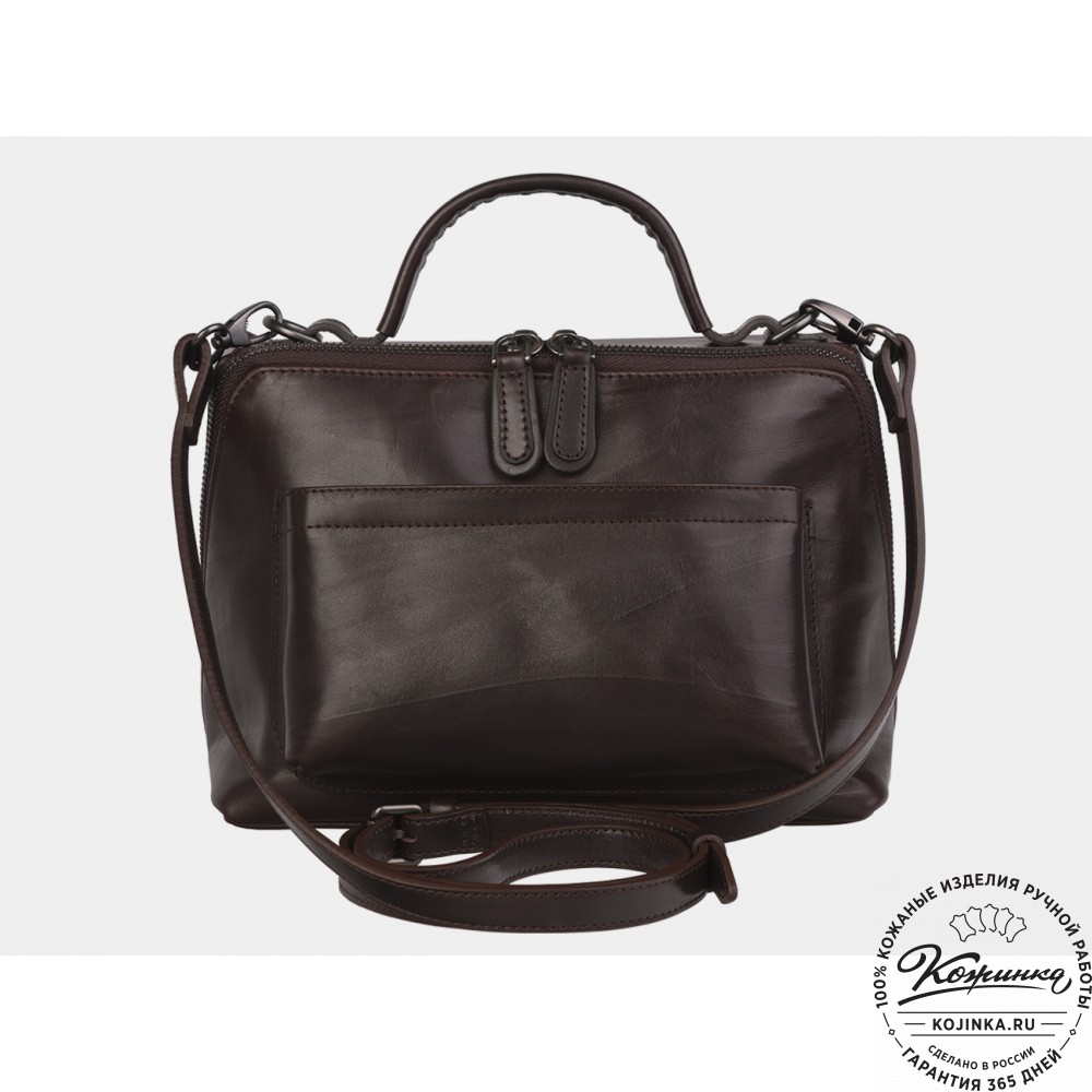 Сумку можно носить в руках за ручку или на длинном ремешке через плечо. Ремешок из кожи, съемный, регулируется по длине.