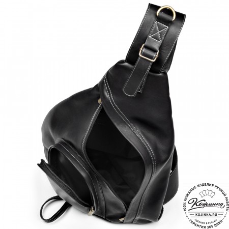 Внутри одно вместительное отделение, открывается молнией с лицевой стороны. Есть небольшой карман на задней стороне - для мелких вещей, документов. Крепкая надёжная настраиваемая конструкция на одно плечо владельца. Сверху крепкая кожаная ручка.