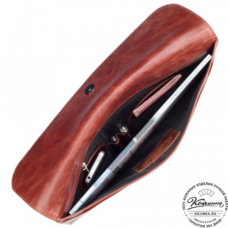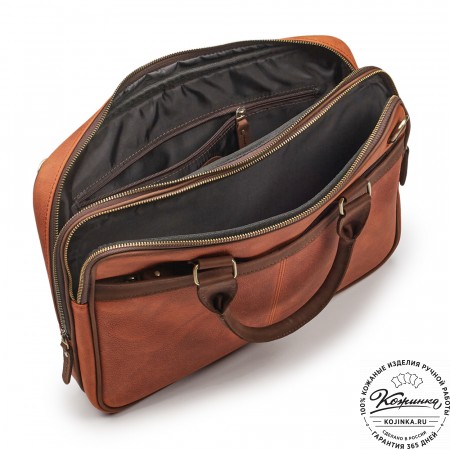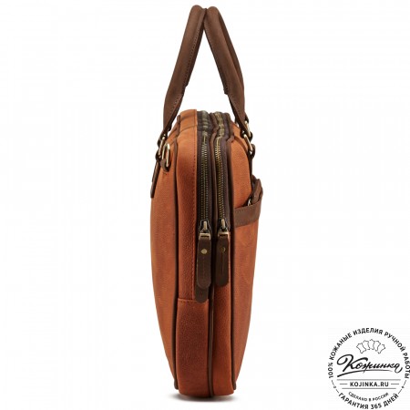Кожаная деловая сумка "Ральф" (рыжий антик) – удобная и стильная сумка slim-формата из натуральной кожи.