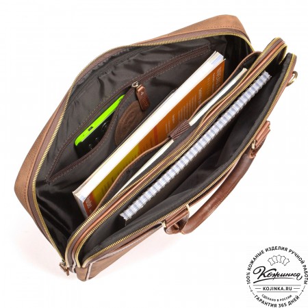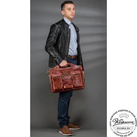 Портфель изготовлен из высококачественной натуральной кожи Антик c эффектом Пулл-ап.