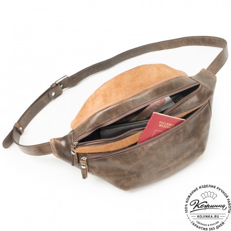 Кожаный ремень регулируется по длине ременной пряжкой. Его дополняет еще один дублирующий ремень для большей надежности.