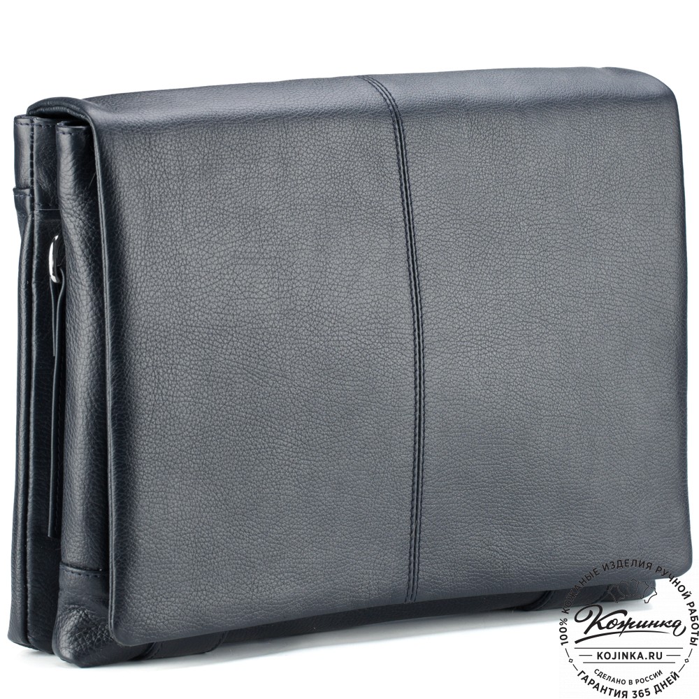 Кожаная сумка "Бавария" (синяя) – практичная повседневная сумка с двумя вместительными отделениями и удобными карманами. В сумку свободно поместится формат А4, папки с документами, журналы, планшет или небольшой ноутбук.