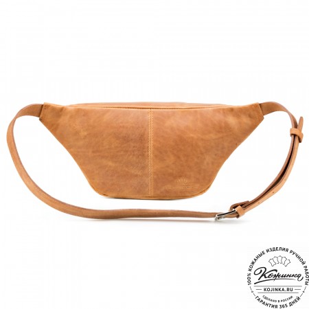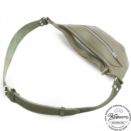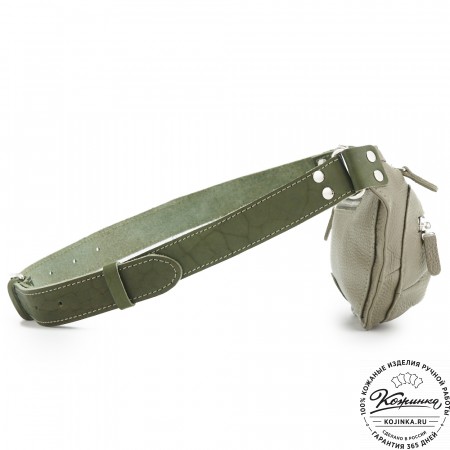 Лямка из кожи, усилена стропой, регулируется по длине.