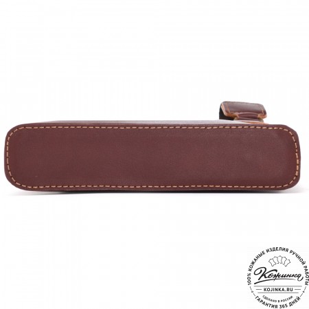 Сумка жесткой формы изготовлена из качественной толстой кожи.