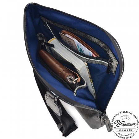 Кожаный плечевой ремень съемный, регулируется по длине.