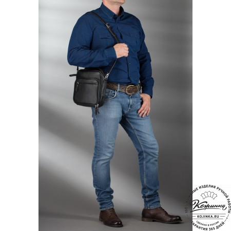 Кожаная сумка "Гарольд" (чёрная) – удобная сумка-планшет из натуральной кожи.