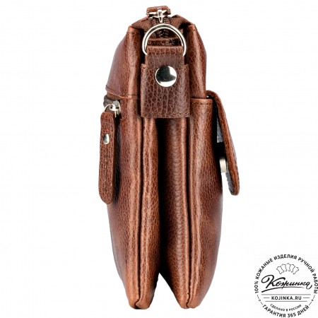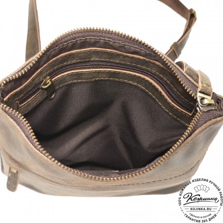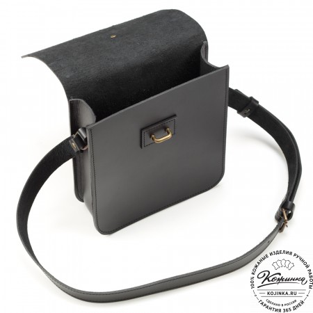 Плечевой ремень регулируется по длине пряжкой. Свободный конец ремня аккуратно фиксируется кожаным кольцом.