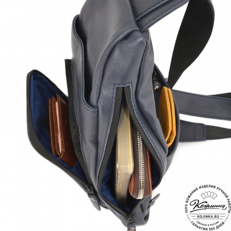 Кожаная сумка "Митчел" (синий антик) – стильная и элегантная сумка-планшет из натуральной кожи.