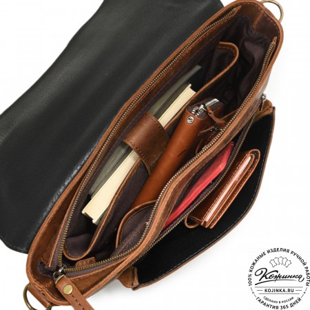 На фото модели представлена сумка "Марк" коричневый крейзи.