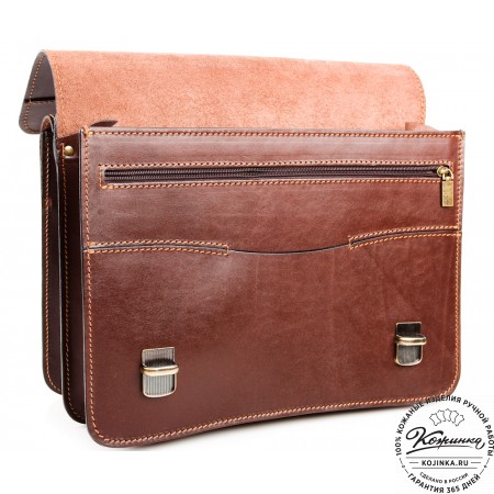 Эта модель портфеля на 2 отделения и еще 1 отделение между отделами на молнии для бумаг. Внутри имеются отделения для телефона, ручек и визиток.