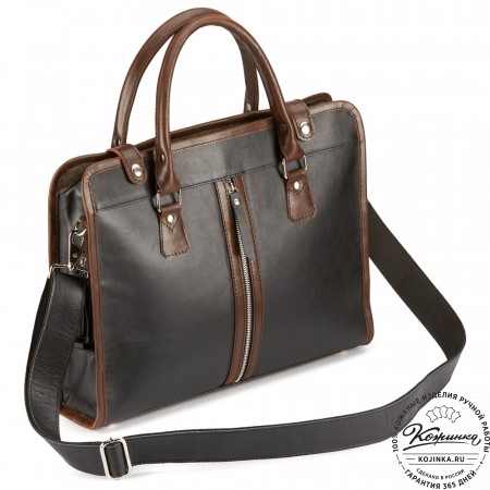 Сочетание черной кожи и темно-коричневой отделки и минимализм фурнитуры делают этот портфель поистине роскошью делового мужчины.