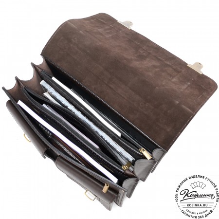Портфель выполнен из отборной 100% кожи, которая тщательно отбирается специально для этого изделия в Европе.