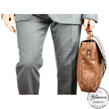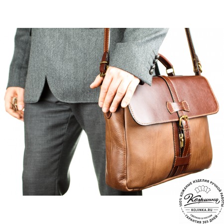 Кожаная деловая сумка "Стюарт" (коричневый эксклюзив) - стильный аксессуар для делового человека!