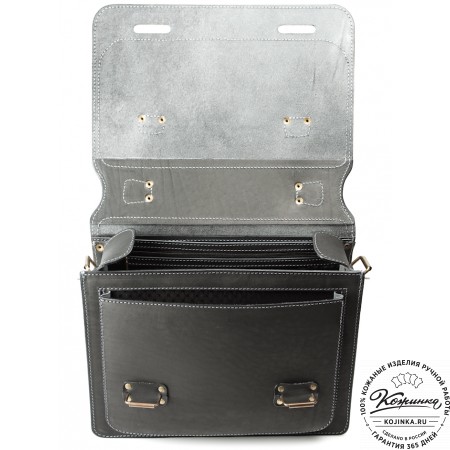 Портфель представляет собой одно большое основное отделение с большим накладным карманом спереди. В накладном кармане расположены перли для ручек, кармашки для визиток.