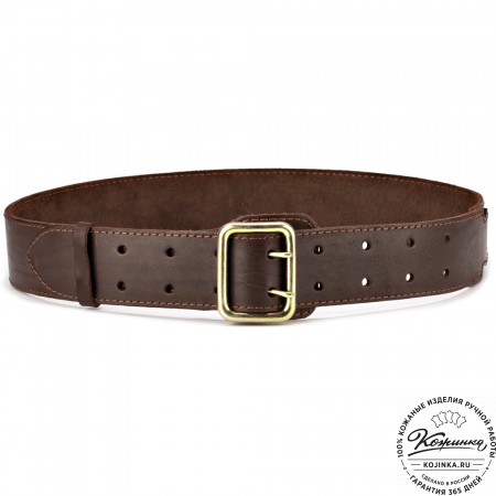 Кожаный мужской ремень Милитари (коричневый) - выполнен в лучших традициях!