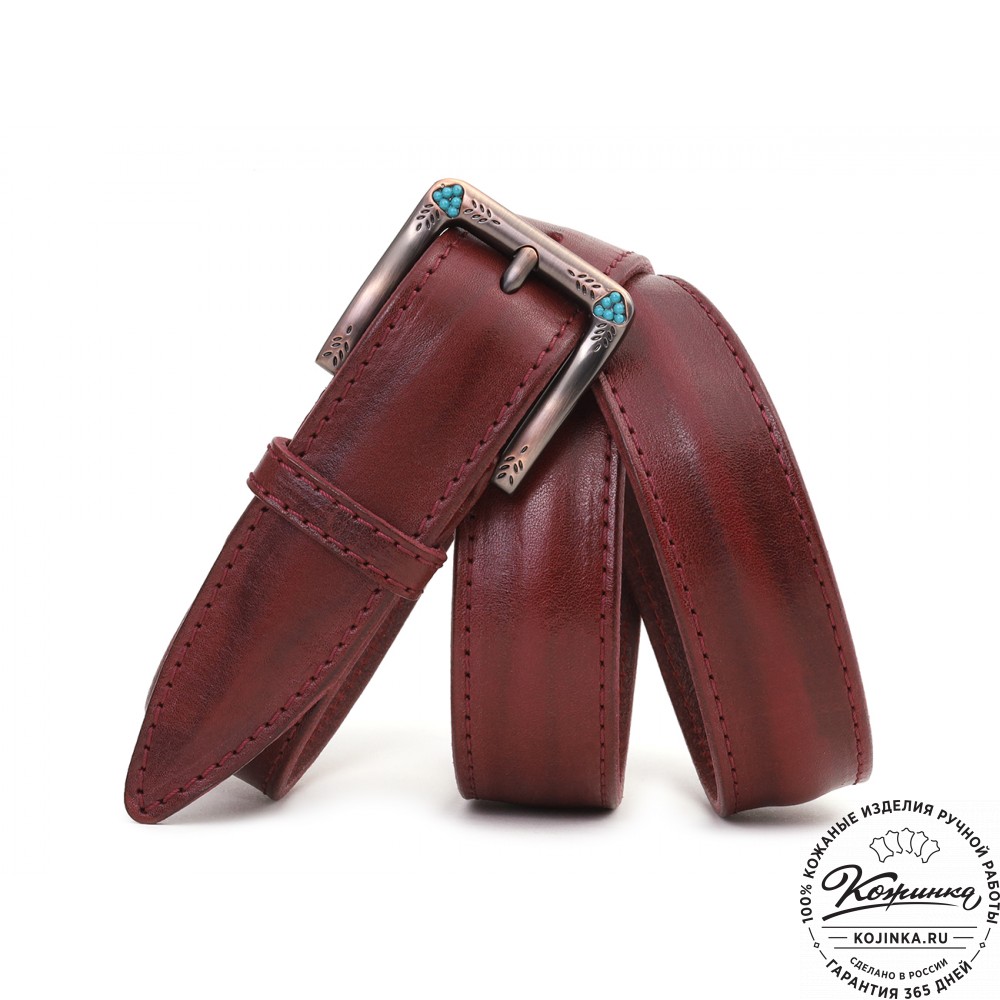 Кожаный ремень "Ирис" (бордо) - женский ремень с красивой пряжкой.