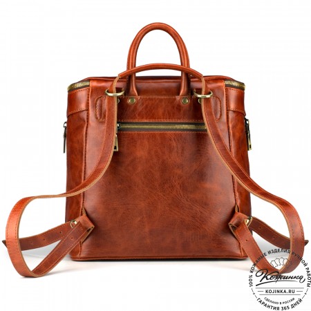 Женский кожаный рюкзак "Гейша" (розовый) - восточные мотивы в мельчайших деталях!