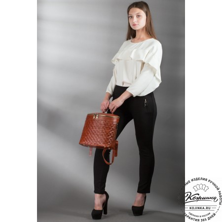 На моделях представлены рюкзаки "Гейша" белого и коричневого цветов.