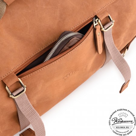 Основное отделение закрывается на молнию по диагонали. На задней стенке внутри есть карман на молнии.