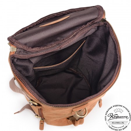 Рюкзак изготовлен из прочной, качественной натуральной кожи и фурнитуры. Внутри подкладка из ткани.