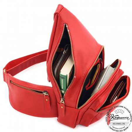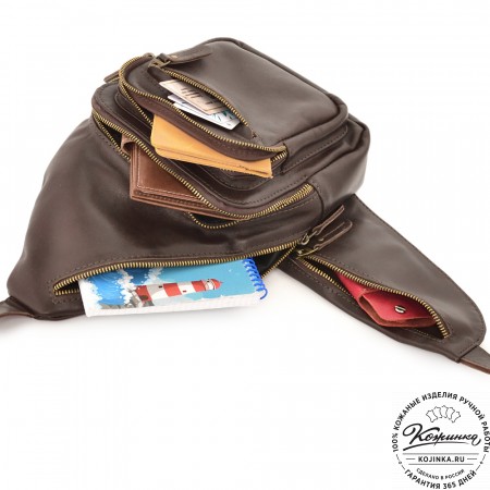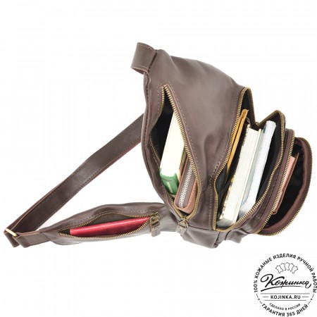 Кожаный рюкзак "Фобос" - стильный диагональный рюкзак на одну плечевую лямку.