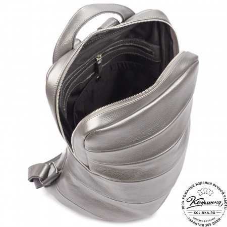 У рюкзака одно просторное отделение, закрывается на молнию со спины. Внутри карман на молнии.