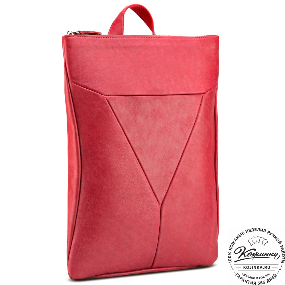 Кожаный рюкзак "Ария" (красный) - стильный городской рюкзак с оригинальным дизайном и застежкой на молнии.