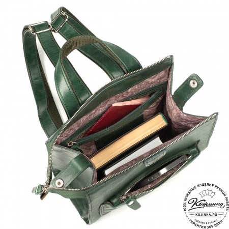 Кожаный рюкзак-сумка "Микки" (тёмно-коричневый) - уникальная небольшая сумка, которая легко превращается в рюкзак. Это очень удобно!