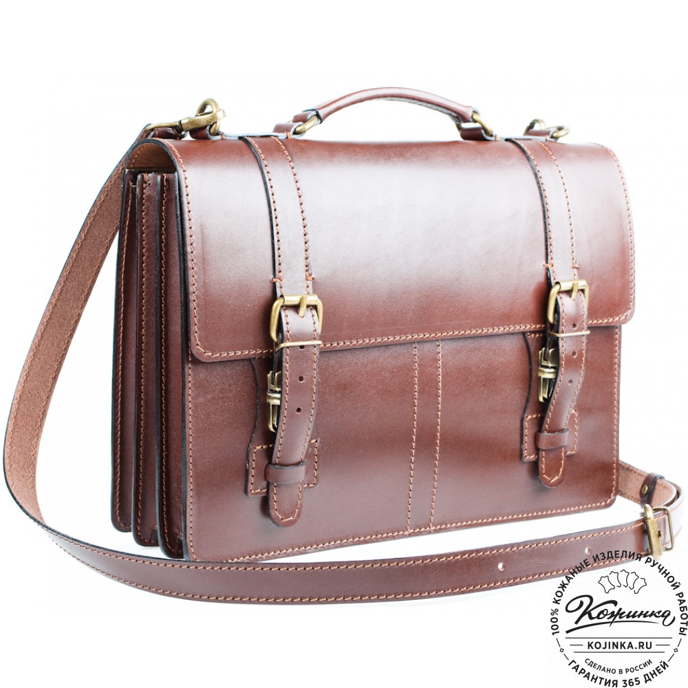 Портфель выполнен из толстой 100% натуральной кожи и хорошо держит форму.