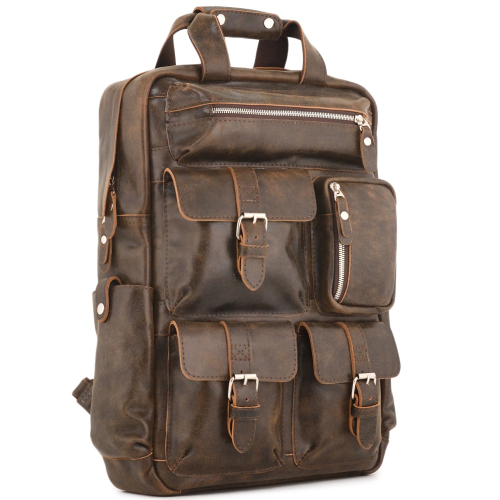 Кожаный рюкзак "Вассерман" - это максимум практичности, вместительности и карманов.