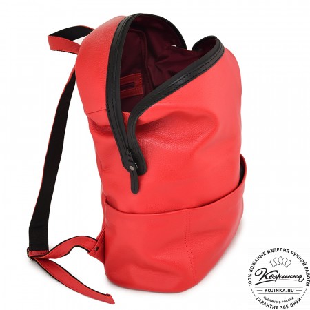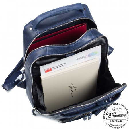 Кожаный ранец-портфель "Джон" (синий с красным)