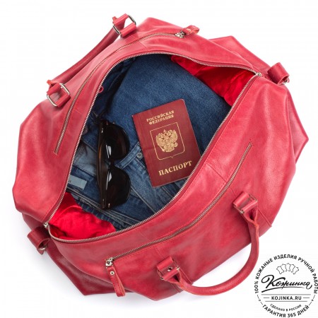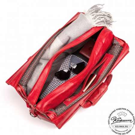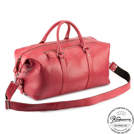Кожаная дорожная сумка "Магнум" (красная с синим)