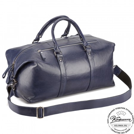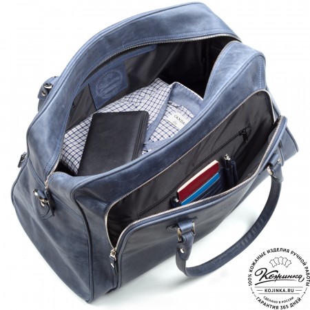 Кожаный дорожный саквояж "Гарри" (синий антик)