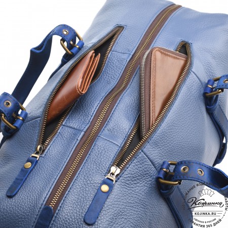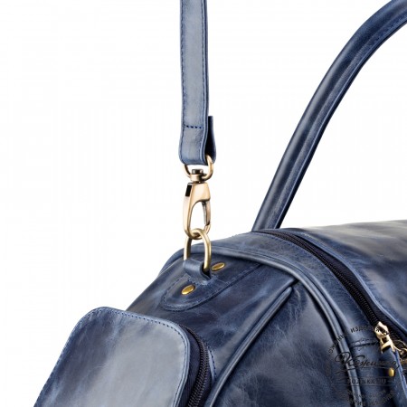 Кожаная дорожно-спортивная сумка "Дональд" (синий антик)