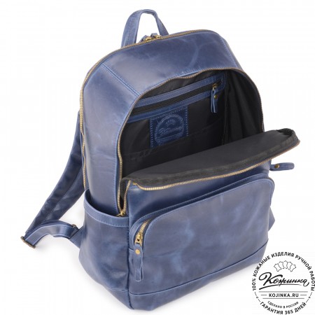Кожаный рюкзак "Гудвин" (синий крейзи)