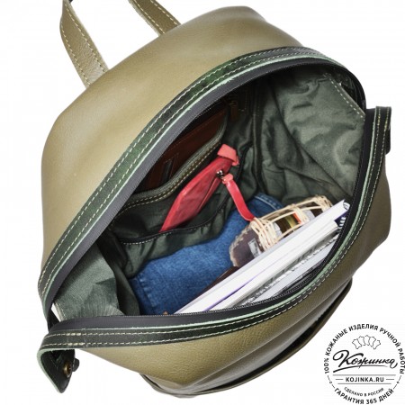 Кожаный рюкзак "Вена" (хаки гладкая кожа)