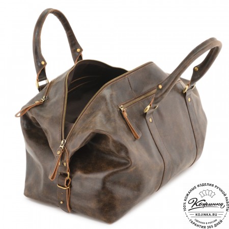 Кожаная дорожно-спортивная сумка "Дональд" (тёмно-коричневый антик)